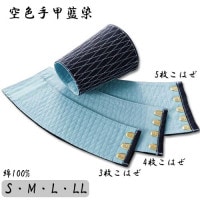 トップ > ワーク(作業用品) > 手袋・軍手・手甲 > 手甲 > 手甲 作業服 鳳皇 手首 サポーター 3枚 4枚 5枚こはぜ 手甲藍染 3本掛け紐 先曲げ加工 糸色選べる 5双セット セットでお得 空色手甲藍染