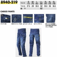作業着 作業服 寅壱 カーゴパンツ オールシーズン 8940-219 デニム メンズ 5L