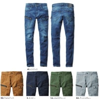 素材:コーデュラCOOLストレッチデニム7.50Z(伸長率27%)、製品洗い、プラスト加工(インディゴのみ)