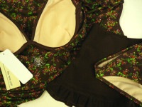 【セール】【メール便可】レディース水着タンキニビキニ9M(9103)■Theterreportワイヤービキニ4点フリルパンツ付小花柄茶女性水着9号