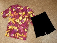 【メール便可】水着レディースフィットネスセパレート7S(11049)■BATHINGDRESSレディース水着イチョウ柄レッド赤女性水着7号