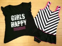 子供水着女児ワンピース【メール便可】110(11861)■FIORUCCI(フィオルッチ)ワンピース水着2点セットボーダー白黒女の子水着110cm