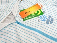 子供水着女の子ラッシュガード160メール便送料無料(12871)指穴長袖フルジップファスナーフード紫外線対策ストライプ白水色160cm