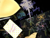 ■透け感のあるシフォンのトップス&ネオンカラーの花柄ビキニの可愛いデザインです。