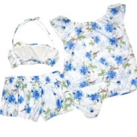 ■タンキニ水着+カバーアップシャツ(半袖)+ショートパンツの4点セットです。