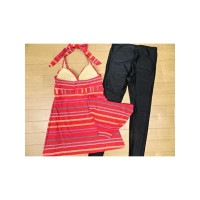 トップ > 水着 スイム他 > ■ タンキニ > 7(S)〜11(L)号 > 水着 レディース レギンス 体型カバー タンキニ ワンピース 3点セット 送料無料 9M チュニック 細ボーダー 赤 9号